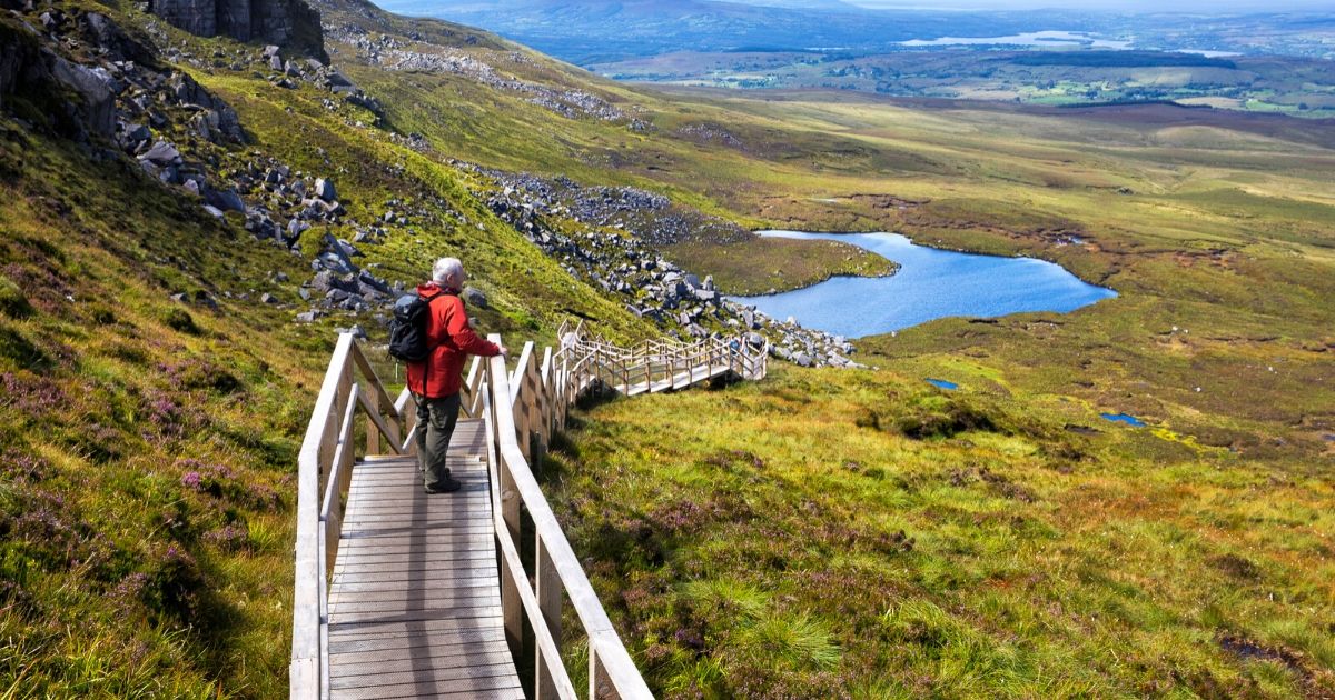 At the summit of cuilcagh for spectacular views across cavan & fermanagh. It takes about 2 hours to reach the summit of the cuilcagh mountain walk. But it was still a super walk, plenty of people going up as we descended. Wooden walkway stairway to heaven at cuilcagh mountain in fermanagh, northern ireland. The design of the walkway means the timber “floats” above the landscape, .